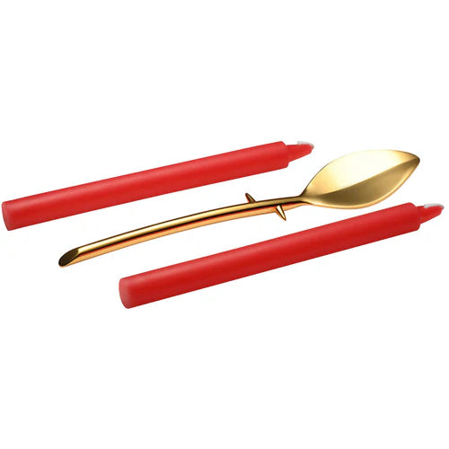 Adding more than a hint of heat to your sexy adventures, the Master Series Drip Sensation Spoon & Candle Set lets you drizzle and dab hot wax to your (and your sub's) hearts content!