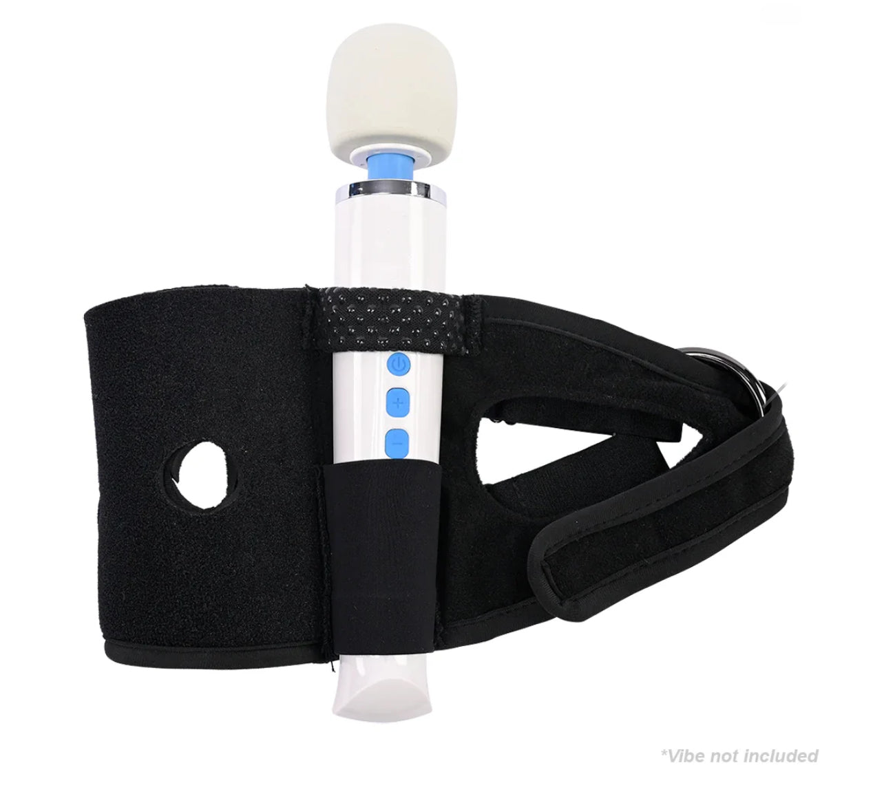 For partner penetration, you can use a wide range of dildos, vibes, and probes—anything with a flared base and diameter between 1-2"/2.5-5.8cm will fit through the reinforced O-ring. If you'll be strapping in a vibe, slip it through the two side-placed straps, tighten up, and play away! Standard massage wands (not included) will work best.